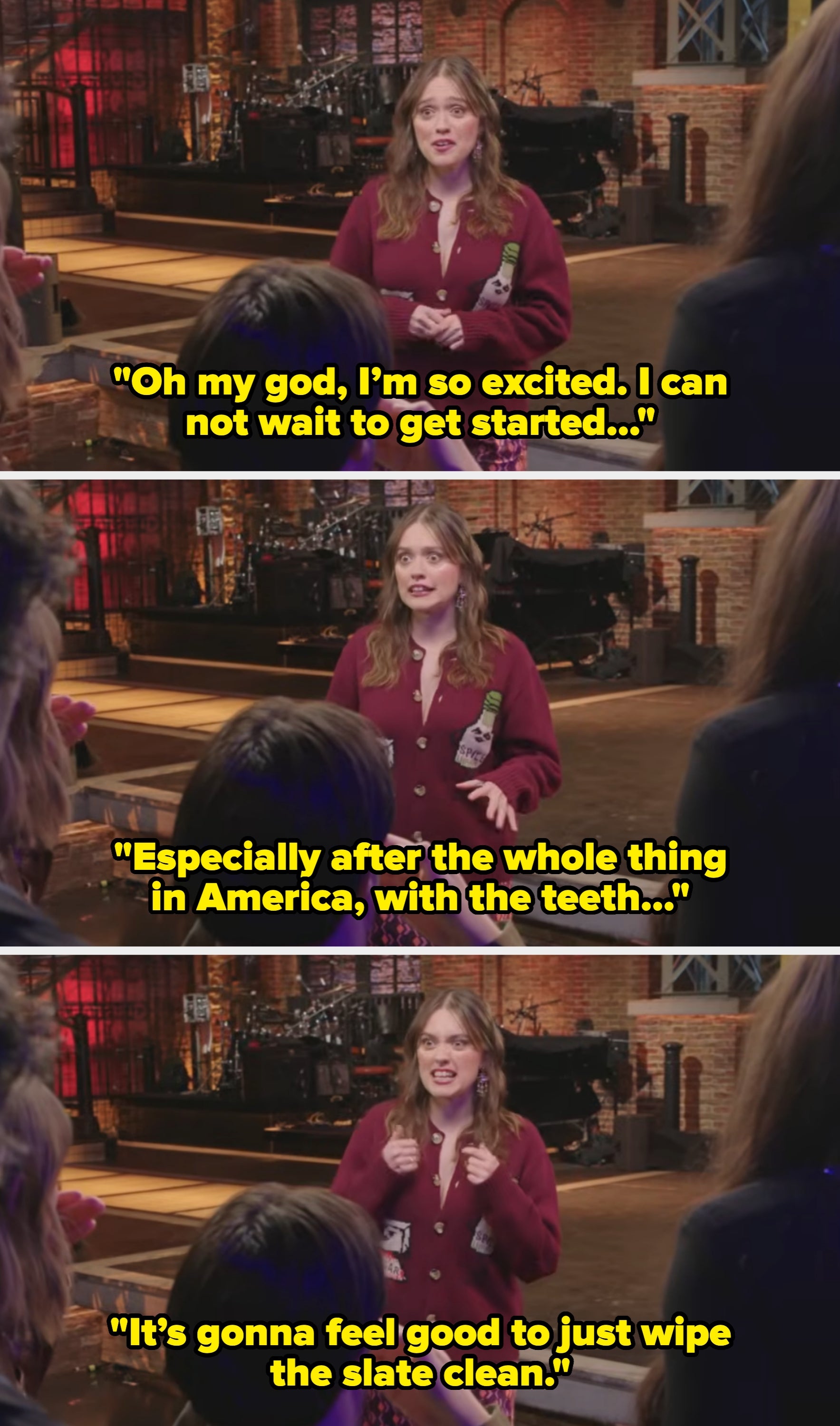 In the video, Aimee approaches SNL UK formed members Celeste Dring, Al Nash, Paddy Young, and Ayoade Bamgboye successful the studio, saying: “Hey guys, ohio my god, I’m truthful excited. I tin not hold to get started — particularly aft the full happening successful America, with the teeth… So it’s gonna consciousness bully to conscionable hitch the slate clean.”