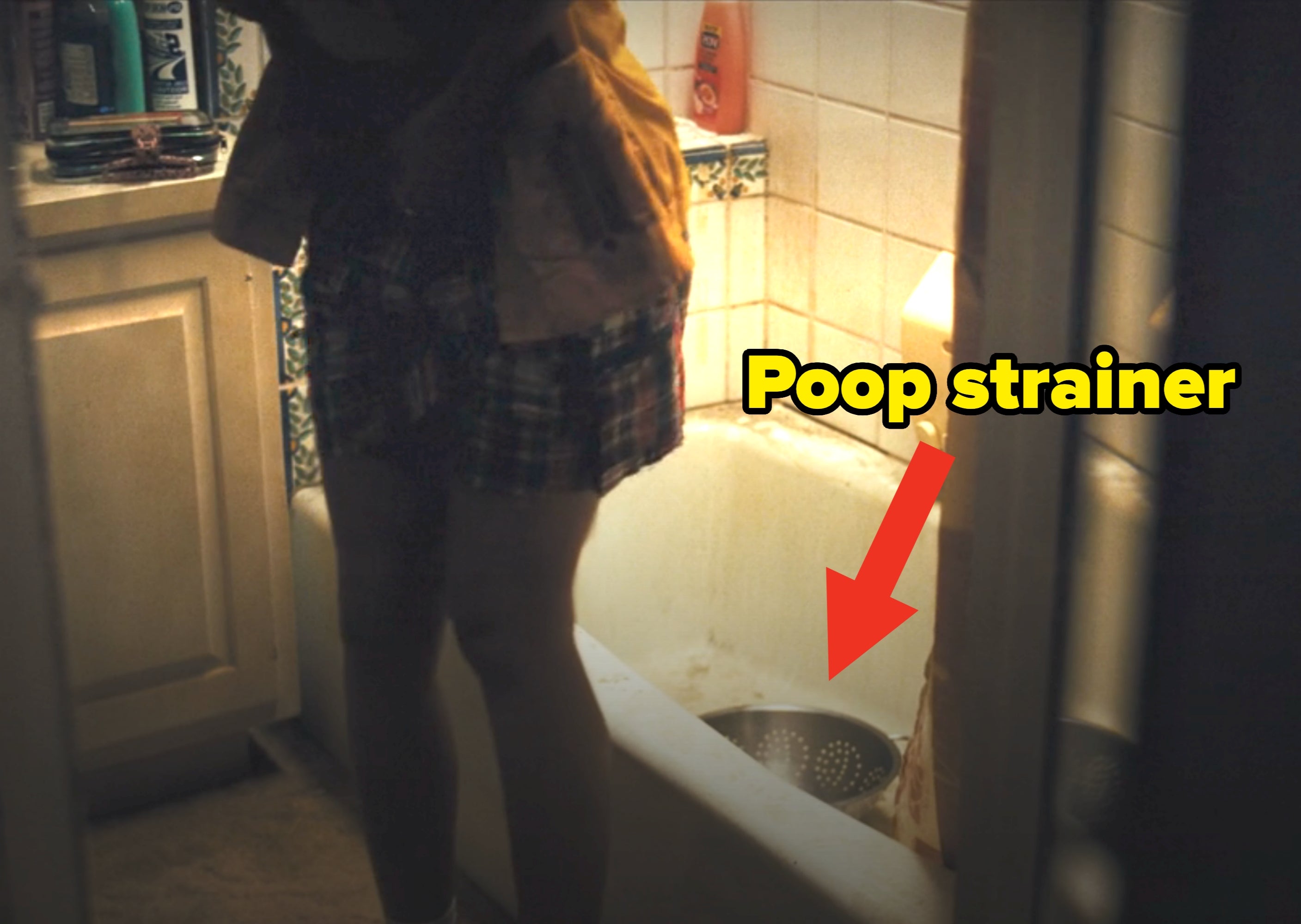3. Meanwhile, Rue is seen being rushed upstairs to the bath arsenic she tries to refrain from pooping, yet relieving herself into a strainer: