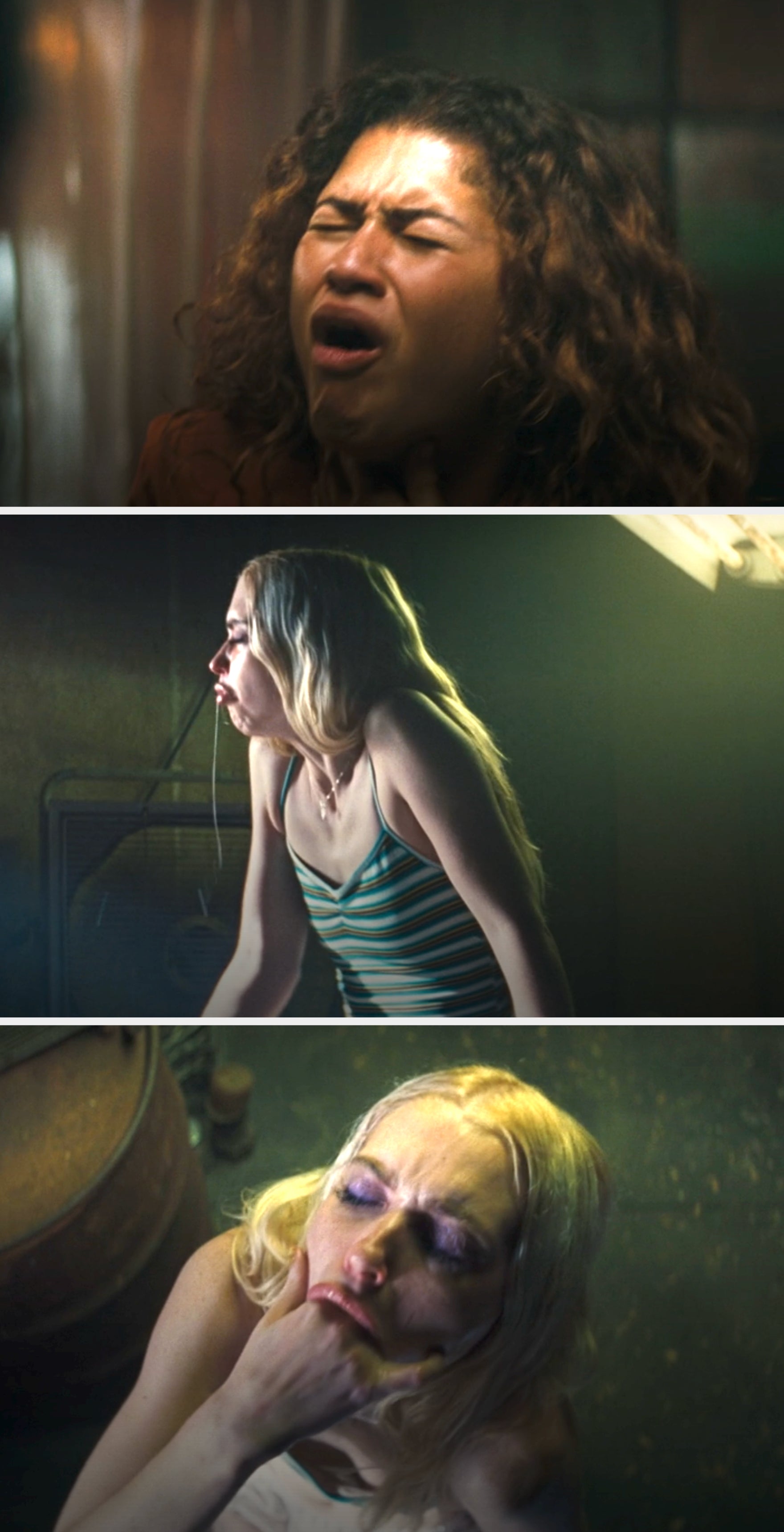 A far-too-lengthy montage shows Rue and her person Faye, played by Chloe Cherry, repeatedly gagging, dribbling, and coming adjacent to vomiting arsenic they unit the balls of drugs down their throats successful a genuinely stomach-turning scene: