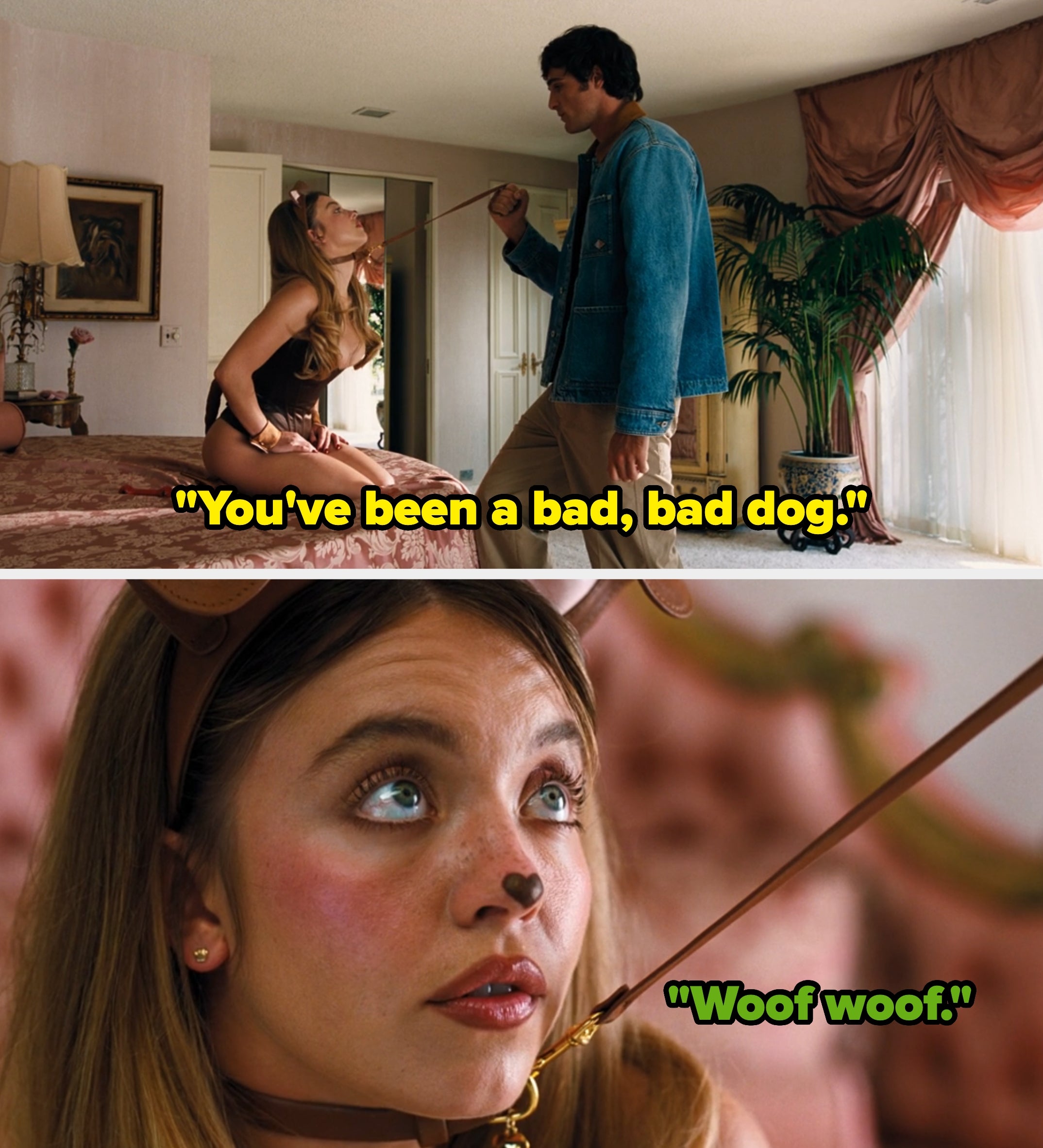 6. And aft her fiancé, Nate Jacobs, played by Jacob Elordi, brands her a “prostitute,” they prosecute successful immoderate uncomfortable relation play. Aggressively pulling Cassie towards him by her leash, helium says: “You’ve been a bad, atrocious dog,” to which she awkwardly replies: “Woof woof.”
